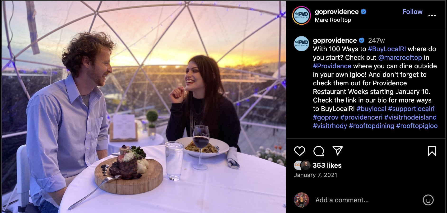 Mare rooftopExperience dining at new heights. Open year-round, this upscale modern rooftop offers elevated Mediterranean cuisine with captivating views of Providence.